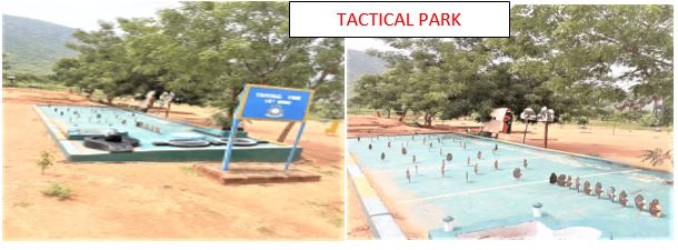 Tactical park is also available in this institute to train trainees with platoon formation, section formation, physical features, field fortification, various types of targets, elements to recognize the North direction and wire obstacles etc.